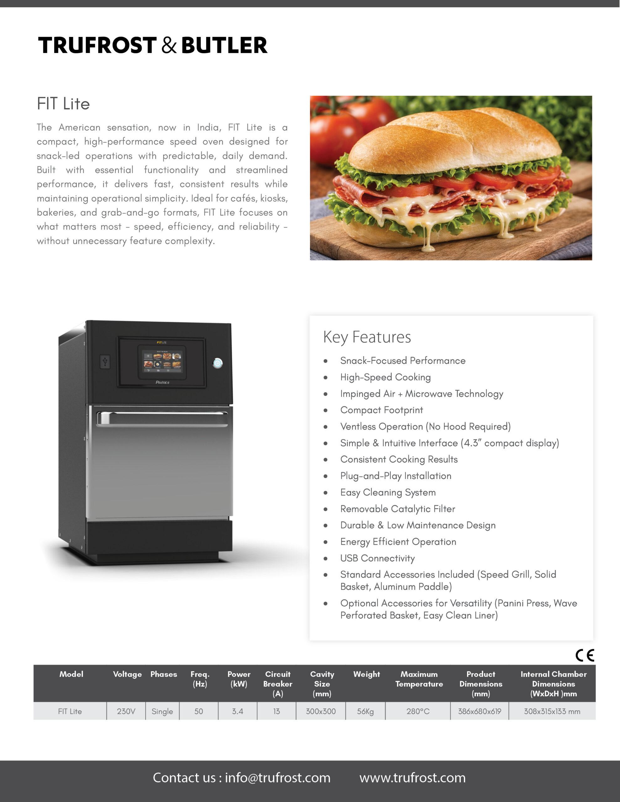 The American sensation, now in India, FIT Lite is a compact, high-performance speed oven designed for snack-led operations with predictable, daily demand. Built with essential functionality and streamlined performance, it delivers fast, consistent results while maintaining operational simplicity. Ideal for cafés, kiosks, bakeries, and grab-and-go formats, FIT Lite focuses on what matters most – speed, efficiency, and reliability – without unnecessary feature complexity.